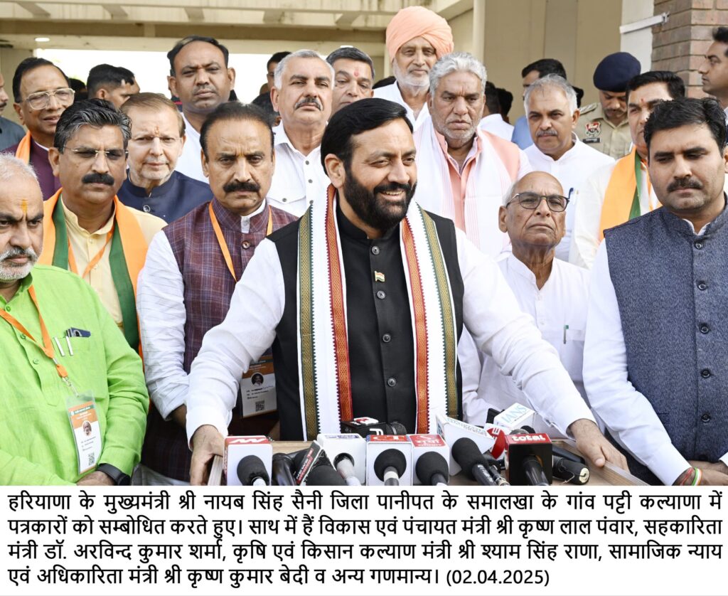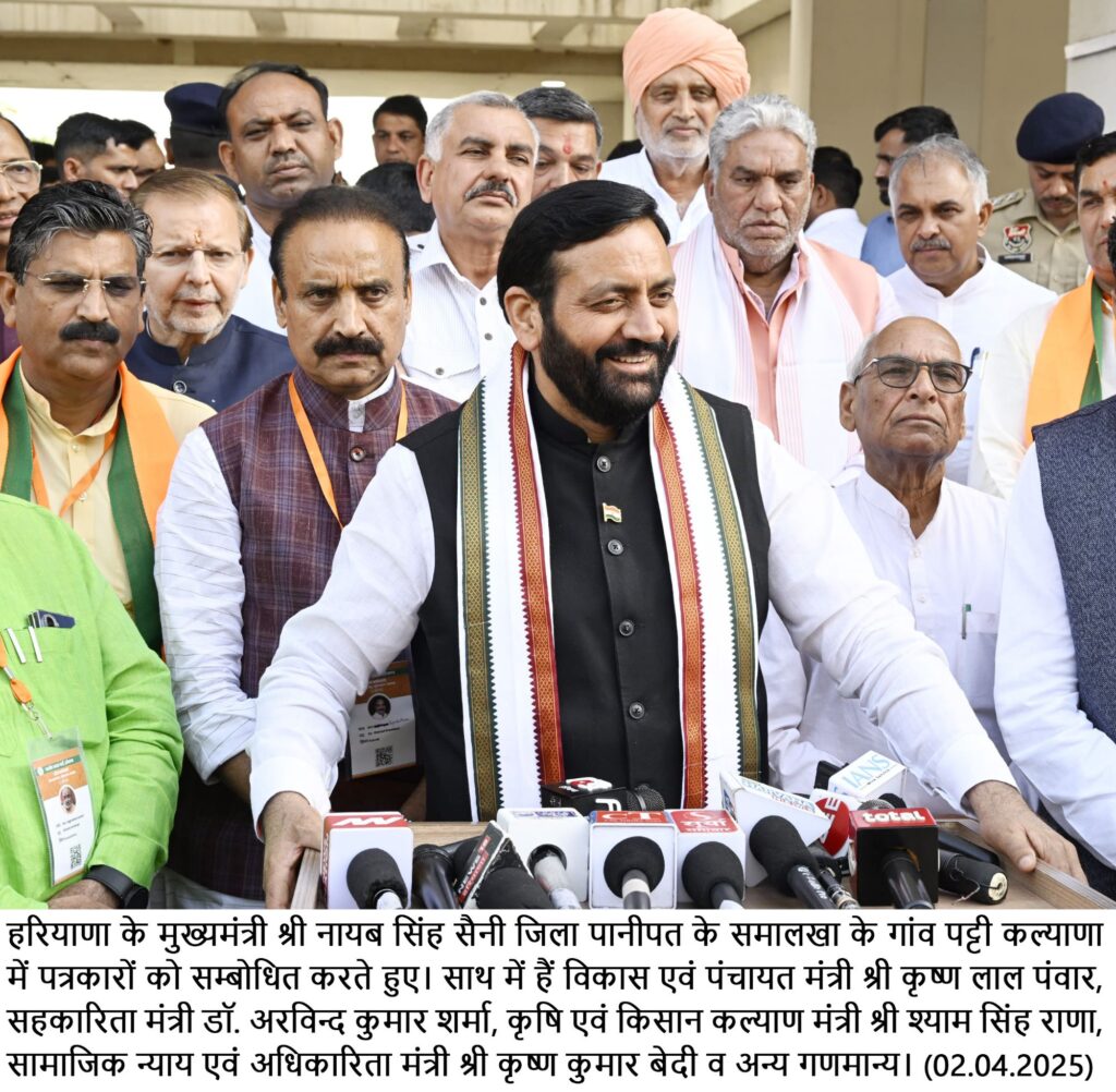 मुख्यमंत्री नायब सिंह सैनी बुधवार को समालखा स्थित सेवा साधना केंद्र में बीजेपी की प्रदेश स्तरीय कार्यशाला में पहुंचे। इस मौके पर उन्होंने पत्रकारों के साथ बातचीत करते हुए जानकारी दी कि आगामी 14 अप्रैल को बाबा साहब डॉ भीमराव अंबेडकर जयंती के अवसर पर प्रधानमंत्री श्री नरेंद्र मोदी हरियाणा को दो बड़ी सौगातें देंगे जिसमें हिसार स्थित एयरपोर्ट का उद्घाटन होगा और यमुनानगर में 800 मेगावाट बिजली की यूनिट का शिलान्यास करेंगे।