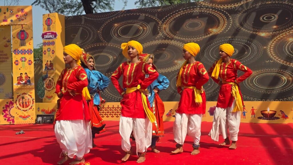 सूरजकुंड-दीपावली मेला में सांस्कृतिक कार्यक्रमों से दर्शकों को अपनी ओर आकर्षित कर रहे विद्यार्थी और लोक कलाकार