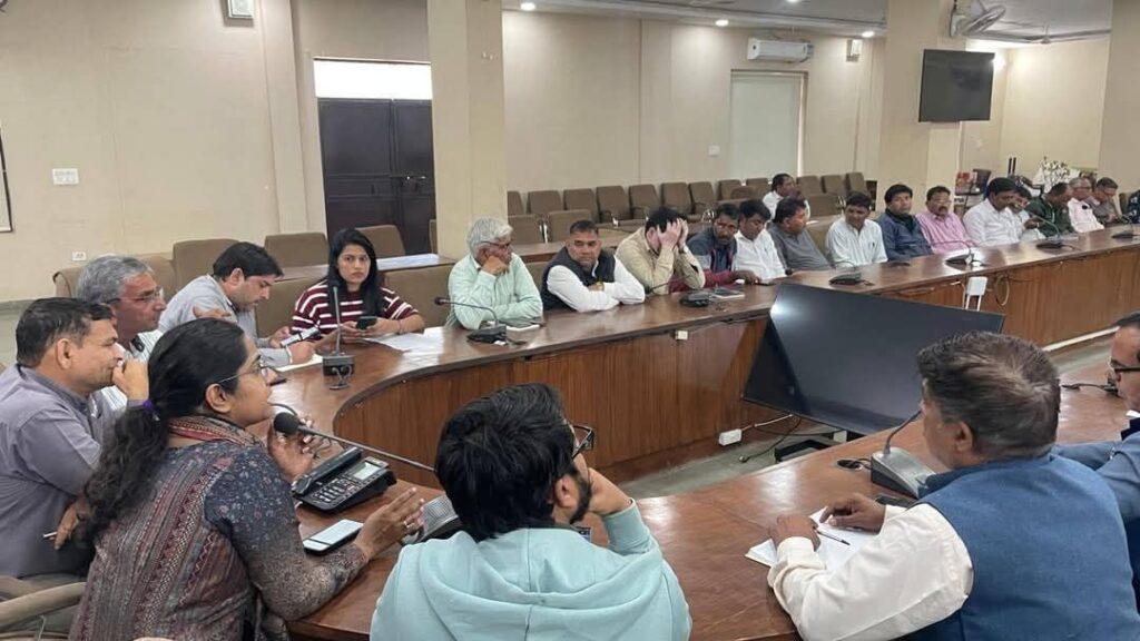 मिटिंग में एक्सपर्ट आश्रय ने सभी अधिकारियों और कर्मचारियों को क्यू आर कोड सर्वेक्षण के बारे में पूरी जानकारी साँझा की।