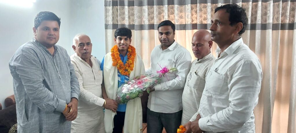 अंतरराष्ट्रीय निशानेबाज अनमोल जैन शुक्रवार की दोपहर कजाखिस्तान के शिमकेंट नामक शहर से 10 मीटर एयरपिस्टल में सिलवर मैडल जीतकर अपने घर लौटे थे। इस दौरान सबसे पहले उनके छोटे दादा राजेंद्र जैन प्रमोद जैन व उनकी दादी दर्शना जैन ने घर पर आकर अनमोल को सिलवर मैडल जीतने पर बधाई दी। इसके बाद पूर्व मंत्री एवं विधायक मूलचंद शर्मा के बड़े भाई टिपर चंद शर्मा, पार्षद योगेश शर्मा, युवा कांग्रेस नेता गिरीश भारद्वाज, टेक चंद शर्मा सहित सोसायटी निवासी एवं उद्योगपति योगेश कुमार बंसल,कमल कुमार गुप्ता, टिंकू गुप्ता सहित अनेकों शहरवासियों ने अनमोल जैन के निवास पर पहुंचकर उन्हें शॉल पहनाकर और गुलदस्ते भेट कर सम्मानित किया। इस दौरान भाजपा नेता टिपर चंद शर्मा व कांगे्रस नेता गिरीश भारद्वाज ने कहा कि अनमोल जैन ने बचपन से अपना एक सपना सजोह रखा था कि वह देश के लिए अंतरराष्ट्रीय व राष्ट्रीय स्तर पर मैडल जीतकर अपने प्रदेश, जिले व शहर का नाम रोशन करेगा। आज ऐसा ही अनमोल करके दिखा रहा है। अब उन्हें अनमोल से उम्मीद ही नहीं बल्कि भरोसा है कि वह आने वाले अंतरराष्ट्रीय प्रतियोगिताओं में देश व प्रदेश का नाम रोशन करेगा।