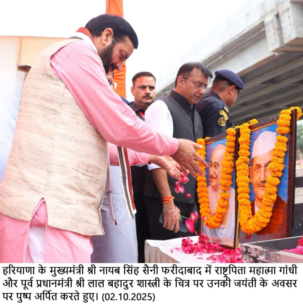 मुख्यमंत्री ने उपस्थित लोगों को दशहरा पर्व की शुभकामनाएं भी दी। इस दौरान उन्होंने राष्ट्रपिता महात्मा गांधी और पूर्व प्रधानमंत्री स्वर्गीय श्री लाल बहादुर शास्त्री की जयंती पर उनके चित्र के समक्ष पुष्पांजलि अर्पित कर उन्हें नमन किया। मुख्यमंत्री के साथ राजस्व एवं शहरी स्थानीय निकाय मंत्री श्री विपुल गोयल, खाद्य एवं आपूर्ति राज्य मंत्री श्री राजेश नागर सहित अन्य गणमान्य लोगों ने भी सेक्टर 9 हरियाणा शहरी विकास प्राधिकरण की ग्रीन बेल्ट परिसर में पौधारोपण करते हुए पर्यावरण संरक्षण का संदेश दिया।