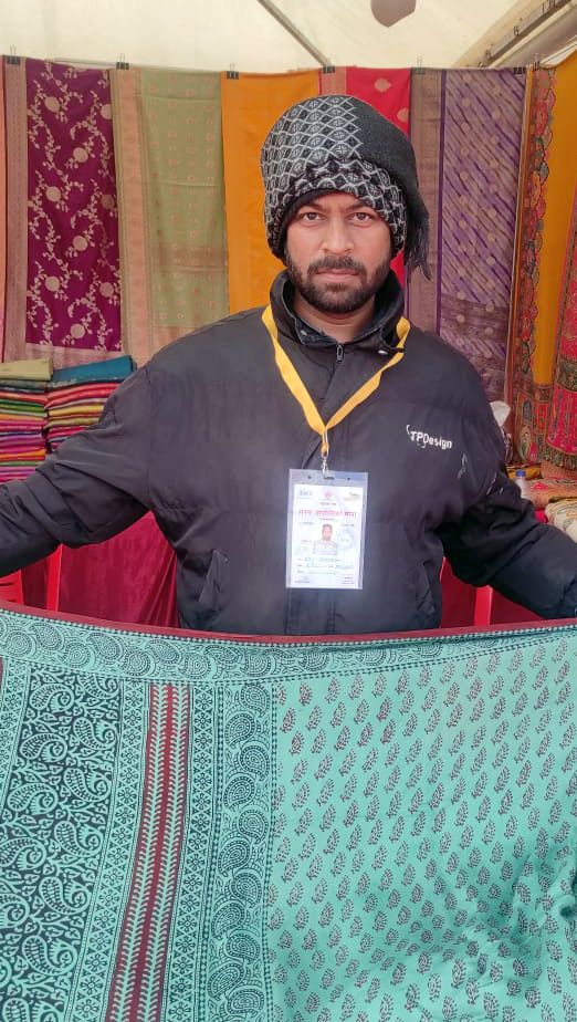 उपायुक्त (डीसी) आयुष सिन्हा के निर्देशानुसार और सीईओ जिला परिषद शिखा के मार्गदर्शन में सेक्टर-12 एचएसवीपी ग्राउंड में आयोजित स्वदेशी उत्सव एवं सरस आजीविका मेला में देश के विभिन्न राज्यों से आए स्वयं सहायता समूहों की सक्रिय भागीदारी देखने को मिल रही है। इसी क्रम में मध्य प्रदेश से आए दीपक ने जानकारी दी कि वह पिछले पाँच–छह वर्षों से अपने समूह के माध्यम से साड़ियों पर हैंड ब्लॉक प्रिंट का कार्य कर रहे हैं। उनका कहना है कि यह पूरा काम हाथ से किया जाता है, जिसमें पारंपरिक ब्लॉक प्रिंट तकनीक का उपयोग होता है। उन्होंने बताया कि वह श्री लक्ष्मी स्व सहायता समूह से जुड़े हुए हैं।